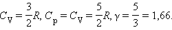 Для газа, состоящего из одноатомных молекул (i = 3)