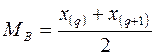 Пусть проведено четное число наблюдений, т.е. n = 2 q, тогда на середину ранжированного ряда приходится два значения x(q) и x(q+1). В этом случае за медиану принимают их среднее арифметическое, т.е.