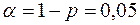 Проводим правостороннюю проверку. Доверительная вероятность p = 0,95,