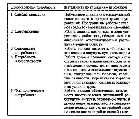 | Соответствие деятельности по управлению персоналом доминирующим потребностям личности |