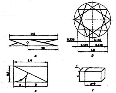 Желательно, чтобы соотношение сторон проектируемых конструкций удовлетворяло требованиям золотого сечения (рис. 7.1, г).