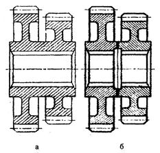 На рис. 8.28 приведен пример облегчения механической обработки путем применения сварных конструкций. Блок зубчатых колёс (рис.8.28,а) изготовить практически невозможно из-за сложности обработки фигурной плоскости между колесами. Составная конструкция (рис.8.28,6) с соединением колес контактной электросваркой позволяет придать колесам необходимую конфигурацию.