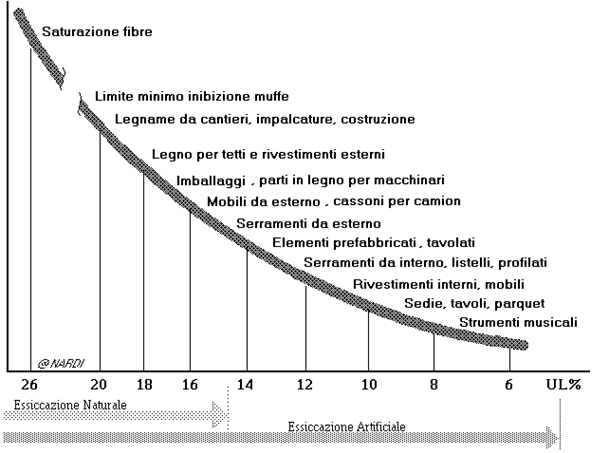 Будучи гидроскопичным материалом, древесина имеет тенденцию впитывать влагу или же отдавать ее в окружающую среду; по этой причине при помощи сушки необходимо вывести конечную влажность древесины на такие значения, которые были бы близки к величинам влажности среды, в которой она будет использоваться.