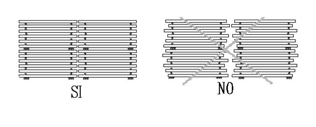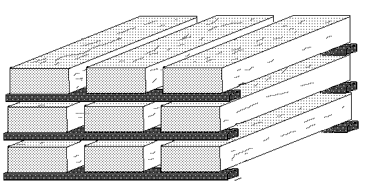Если толщина доски превышает 40 мм, особенно при сушке материала квадратного сечения, штабелирование должно быть выполнено с боковыми интервалами (Рис.15). В среднем, расстояние между досками должно составлять 30-40% от их толщины.