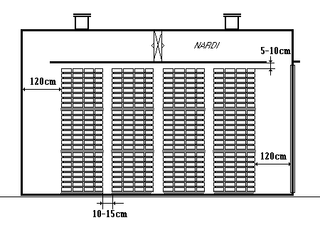 Между верхним углом штабелей и подвесным потолком сушильной установки оставляется пространство не более 5-10 см.