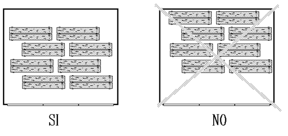 Необходимо принять меры для полного и правильного использования имеющегося пространства сушильной камеры, прежде всего, не следует оставлять пустоты там, где этого можно избежать, поскольку это может повлиять на работу камеры.