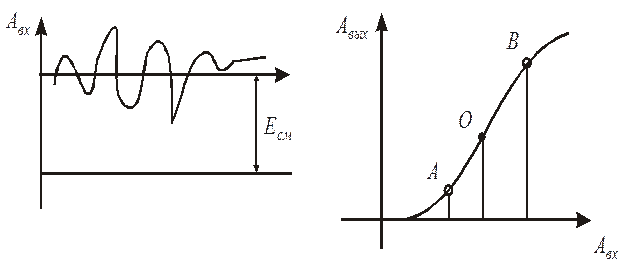 Класс А – рабочая т. О установлена по середине линейного участка. Имеется самый низкий коэффициент искажения Еcm>0