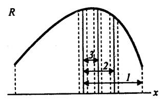 Существует и другой вариант алгоритма, заключающийся в следующем. После нахождения середины отрезка (например, точка с 1) в одной из половинок (допустим, в левой) находят среднюю точку (точка с 2) и, сравнивая значения функции в этих точках, определяют, в какой из половинок находится экстремум. Если R (с 1) < R (с 2), то в качестве следующего отрезка выбираем отрезок [ а, с 1 ], если же R (с 1) > R (с 2), то берут новую точку в середине правой половины (точка с 3) и в ней вычисляют функцию. В зависимости от сравнения значений функции в точках с 3 и с 1 выбирают новый отрезок [ с 1, b ] или [ с2,с3 ] и т.д.