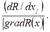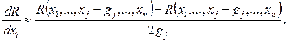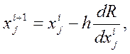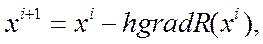 1) оценка градиента R(x) путем вычисления частных производных от R(x) по каждой переменной хj,