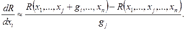 где gj — пробный шаг по j -й переменной, выбираемый достаточно малым для разностной оценки производной.