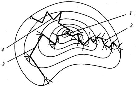 Рис.19. Иллюстрация траекторий поиска оптимума функции методами