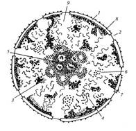 • фибриллярный компонент - локализуется в центральной части ядрышка и представляет собой нити рибонуклеопротеида (РНП);