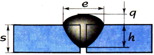 | е – ширина шва; q – усиление шва; h – глубина провара; S – толщина металла. |
