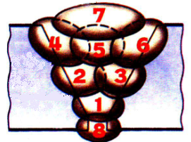 | 1 – корневой валик 2,3,4,5,6,7 – заполняющие 8 - подварочный |
