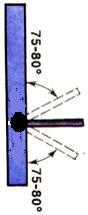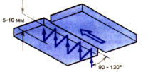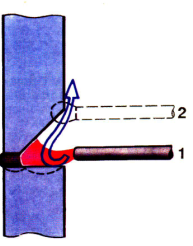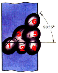 - валиками, который выполняется с наклоном электрода под углом 10-15% к оси шва.