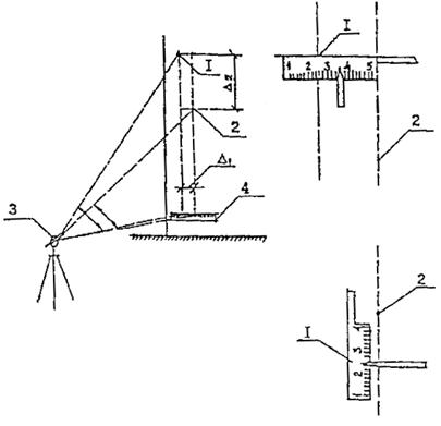 1,2 - точки; 3 - теодолит, 4 - переносная линейка