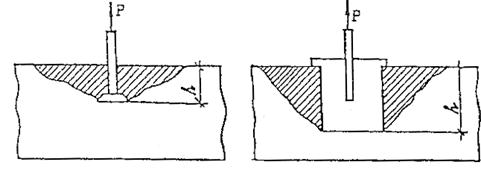 Параметры нагружения следует принимать: а =20 мм; b =30 мм, a=18°(tg a=1-3).