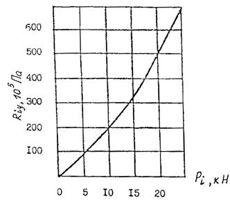 Рис. 6.17. Зависимость условной прочности бетона Rty от силы скола Рi