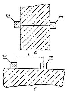 При измерении времени распространения ультразвука способом поверхностного прозвучивания ультразвуковые преобразователи устанавливают на одной стороне образца или конструкции по схеме, приведенной на рис. 6.18.