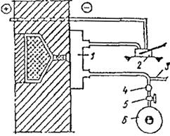 1 - металлическая обойма; 2 - микроманометр, 3 - термометр, 4 - измеритель расхода воздуха, 5 - газовый кран; 6 - пылесос
