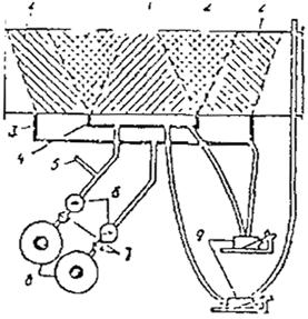 1 - пластичная шамотная глина; 2 - расходомер; 3 - пылесос, 4 - кран; 5 – термометр; 6 – обойма; 7 - микроманометр; 8 - стена; 9 - оконная коробка