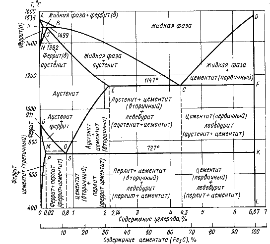 Рис. 9.1. Диаграмма состояния железо - цементит