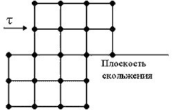 При пластическом деформировании одна часть кристалла перемещается по отношению к другой под действием касательных напряжений. При снятии нагрузок сдвиг остается, т.е. происходит пластическая деформация (рис.6.4)