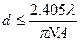 В типичном случае λ = 1.55 мкм, NA = 0.14 и диаметр одномодового волокна равен 6-10 мкм.
