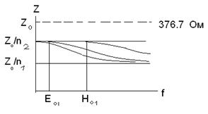 Рис. 5.2. Изменение волнового сопротивления для некоторых мод в зависимости от частоты