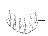 3) Группа бегунов на мягком полу с прогибом. Пол прогибается под действием веса бегущих, при этом сильные всегда бегут вверх, а слабые – вниз (рис.14.1). Это проявление среды.