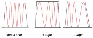 Рис.14.2. Виды частотной модуляции импульса (чирпа).