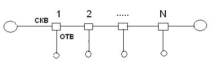 Если на линии установлено несколько (N) Т-образных разветвителей (рис.15.2) со сквозными потерями αскв и потерями ответвления αотв, то общие потери равны