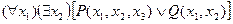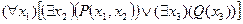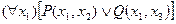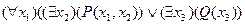A) ("x1)("x2) [P(x1, x2)]; B) ("x1)($x2)[ P(x1, x2)];