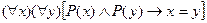 58. Высказывание «Не более чем один объект обладает свойством Р» на языке логики предикатов имеет вид…