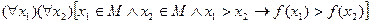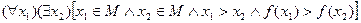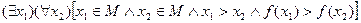 определенная на множестве М не является монотонно возрастающей» имеет вид…