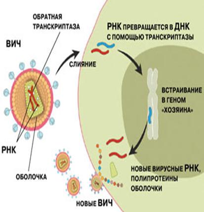 вируса, которая встраивается в геном хозяина и с помощью своих сигналов заставляет ДНК хозяина синтезировать вирусный материал и осуществлять сборку вирусных частиц. Вирусы СПИДа убивают Т-хелперы, а также вызывают их раковое перерождение. В результате поражения вирусом СПИДа количество Т-хелперов в крови снижается.