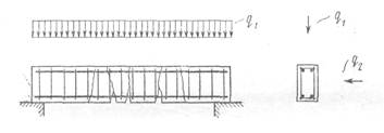 Так, в изгибаемых элементах, работающих по балочной схеме, возникают трещины, перпендикулярные (нормальные) продольной оси, вследствие появления растягивающих напряжений в зоне действия максимальных изгибающих моментов, и трещины, наклонные к продольной оси, вызванные главными растягивающими напряжениями в зоне действия существенных перерезывающих сил и изгибающих моментов (рис. 5.1).