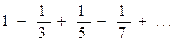 | 26. | Вычислить приближенное значение бесконечной суммы с точностью ε=0,0001 (справа от суммы дается ее точное значение, с которым можно сравнить полученный результат): p/4 |