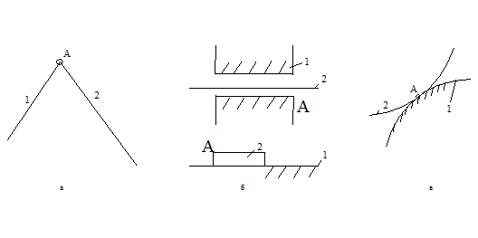 а) – вращательная пара; б) – поступательная пара; в) – высшая пара