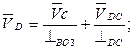 Вектор относительной скорости VDC и вектор абсолютной скорости VD не известны по величине, но известны по направлению. В соответствии с векторным уравнением через точку С на плане скоростей проводим прямую, перпендикулярную звену CD. Это будет линия относительной скорости, где далее проводим линию параллельно направляющей