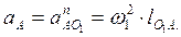 Вектор a nBA направлен вдоль звена AВ от точки В к точке A (к центру относительного вращения).