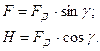 Силы F и H связаны с углом передачи движения следующими зависимостями: