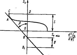 Проводим предельную касательную АВ к кривой в отрицательной области ускорений под углом 45° к оси