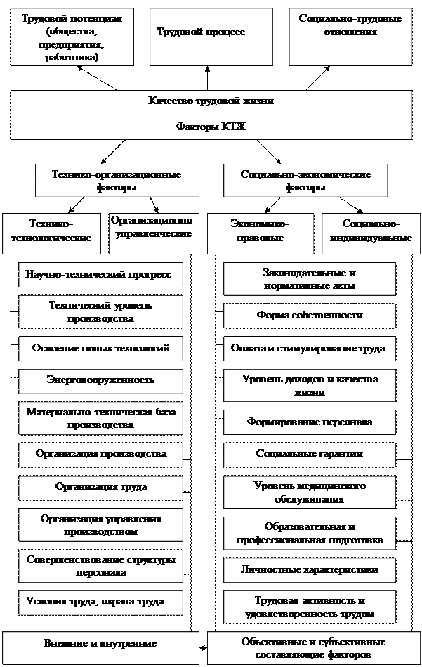 Объективный характер носят экономические законы и тенденции развития всей экономической жизни общества, в том числе и трудовой жизни, которые в целом и формируют факторы формирования и развития ее качества.