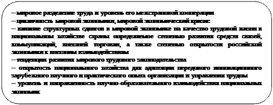 – влияние структурных сдвигов в мировой экономике на качество трудовой жизни в национальном хозяйстве страны определяемое степенью развития средств связей, коммуникаций, внешней торговли, а также степенью открытости российской экономики к внешним взаимодействиям;