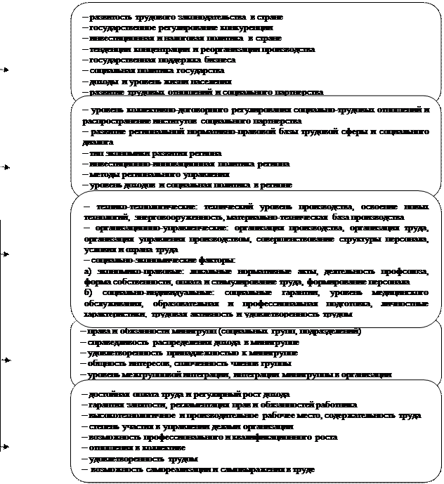 На качество трудовой жизни оказывает влияние множество факторов, действие их может быть разнонаправленным – позитивным, улучшающим параметры трудовой жизни, и негативным, отражающим стагнацию социально-трудовых отношений на всех уровнях экономики.