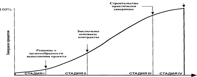 Выделение дополнительных этапов в крупных проектах связано не только с большой продолжительностью строительства этих объектов (10 - 15 лет), но и необходимостью более тщательного согласования действий организаций - участников проекта.