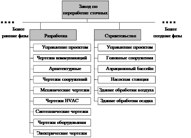 Рис. 2.4. Образец структуры декомпозиции видов деятельности для строительства завода по переработке сточных вод