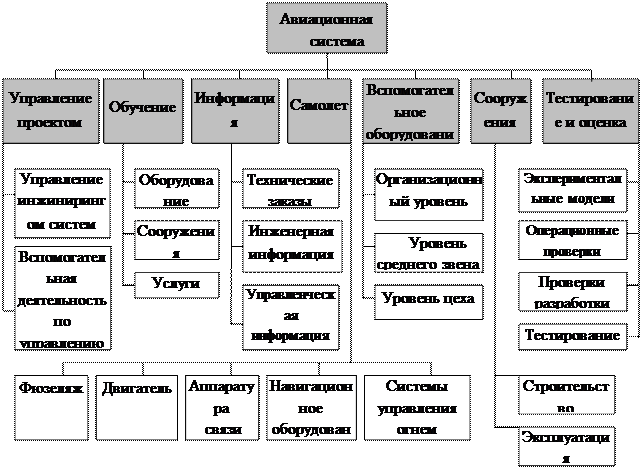 Многие прикладные области имеют стандартные или наполовину стандартные WBS, которые могут быть использованы как шаблоны. Примером может служить Министерство обороны США, определившее стандартные структуры WBS для проектов, связанных с вопросами обороны. Фрагмент одной из таких структур приведен на рис.2.5.