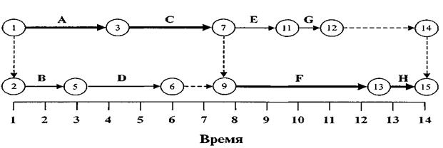 Рис. 3.9. Сетевая диаграмма (график) в масштабе времени